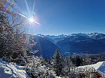The way back to Aminona can be tackled either on snowshoes via the trail or along the road. We opted for the road as it winds its way gently down into the valley.