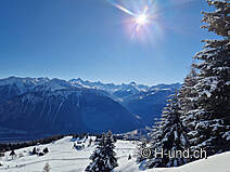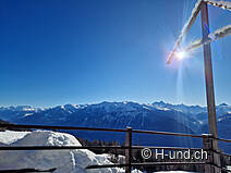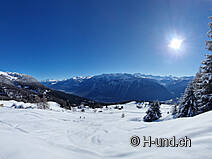 This snowshoe trail is ideal for people who love untouched nature and tranquillity, with panoramic views of the majestic four-thousand-metre peaks.