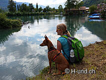 With still some soft knees from the rocking we march on and follow the forest path down to the lake to Oberried. Along the way wild violets bloom, orchids and lizards take shelter from Brenes. Suddenly we pause: in front of us a more than 1m long viper lies on the path and basks in the sun. What a surprise. Unfortunately, as a result of an avalanche, we cannot hike on Route 4 to Niederried as planned. Due to the lack of alternatives we have to follow the relatively busy road for some kilometres. Once we arrive in Niederried, we turn back onto the Way of St. James and finally allow ourselves the lunch break, once planned for shortly after Oberried. We continue up the mountain and shortly after that down again to Ringgenberg. From far away the beautiful castle church, which can be reached by 92 steps, catches the eye. Then we have already reached the end of the lake at Goldswil and follow the right bank of the Aare. The view back reaches again to the other end of the lake and to Brienzwiler where we started this morning. Wow! The last few kilometres always lead along the Aare directly into the lively old town of Interlaken.