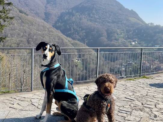 Sur la table de la cuisine, il y a pour nous un cadeau de bienvenue avec du fromage, de la focaccia et du prosecco. Pour les chiens, il y a des gamelles, des couvertures et un paquet surprise de Vitakraft, y compris une brochure avec les informations et les conseils les plus importants pour les propriétaires de chiens. Nous sommes sincèrement touchés par cet accueil et cela montre qu'ici, les chiens sont aussi les bienvenus en tant qu'invités.