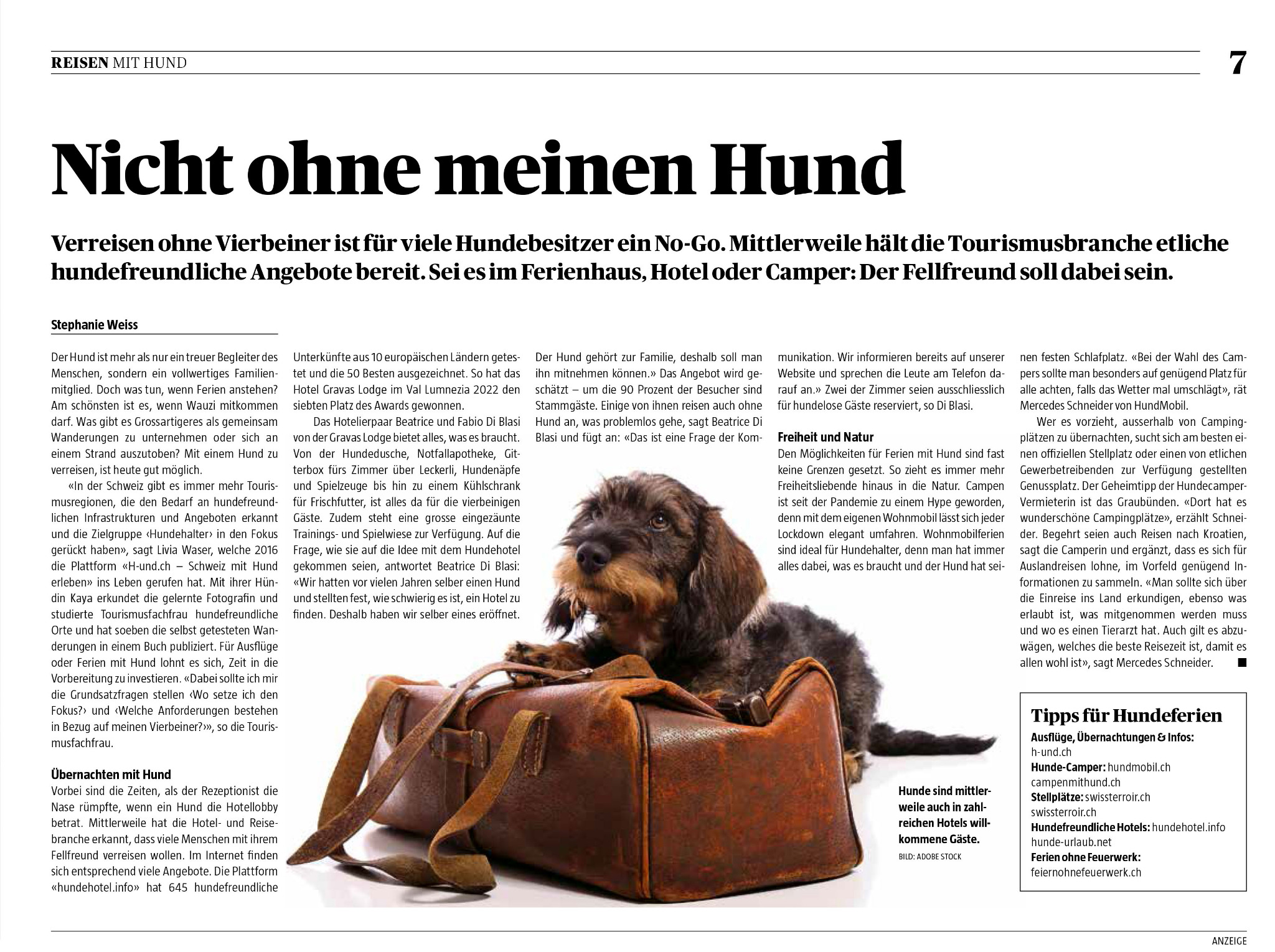 Intervista a Livia Waser (fondatrice del marchio "H-und.ch: vivere la Svizzera con il proprio cane") sull'argomento.